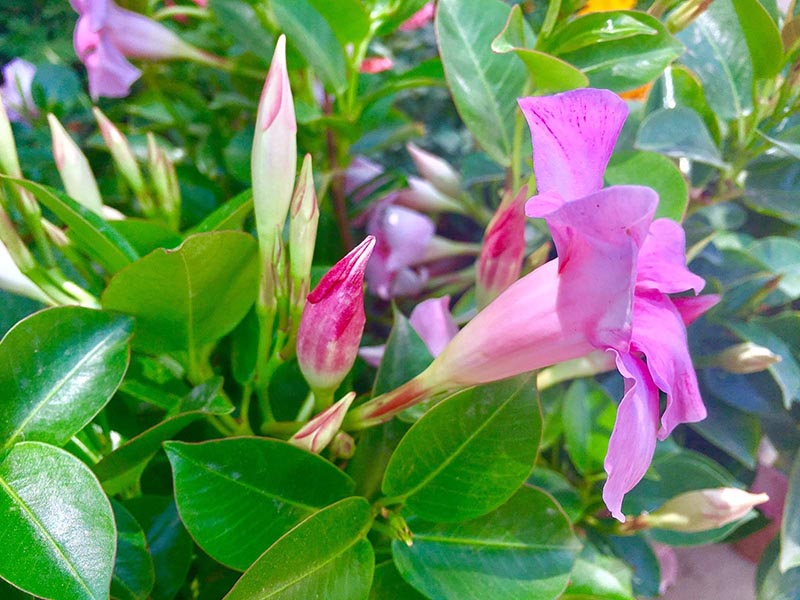 飘香藤的花瓣为腋生,花冠展现型管形,色调较多而且富有转变,主要有红色、桃红色、金红色,粉红色。开花较为繁茂。