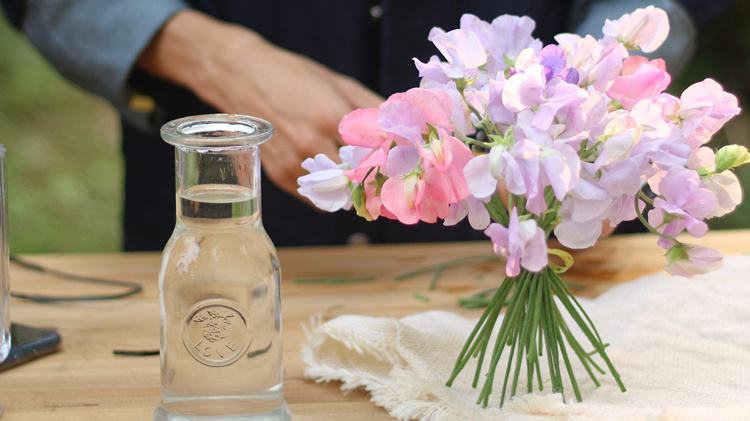 4.在手握点使花茎很好的重合,手里可以拿到更多的花材。