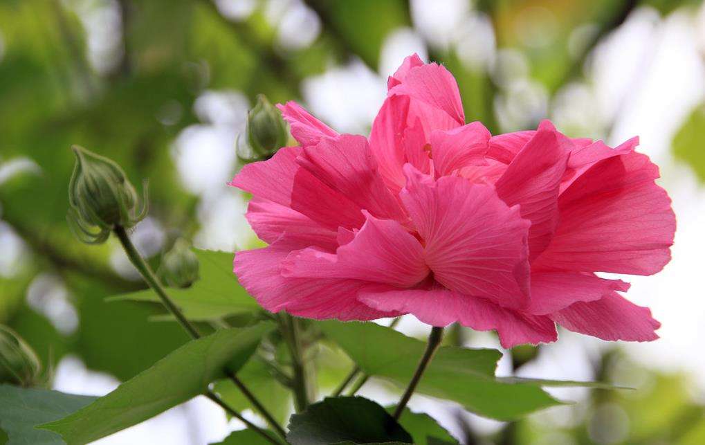 木芙蓉,又名芙蓉花,春天的时候梢头嫩绿,一派生机盎然。夏天绿叶成荫,消除炎热带来清凉。木芙蓉秋季开花,花团锦簇,分外妖娆,有“照水芙蓉”之称。到了冬天树叶褪去,寂静中孕育新的生机。一年四季,各有风姿和妙趣,它不仅是优良的园林观花树种,还能有效地吸附大气中飘浮的固体颗粒物净化空气,常植于庭院、坡地、工厂周边。