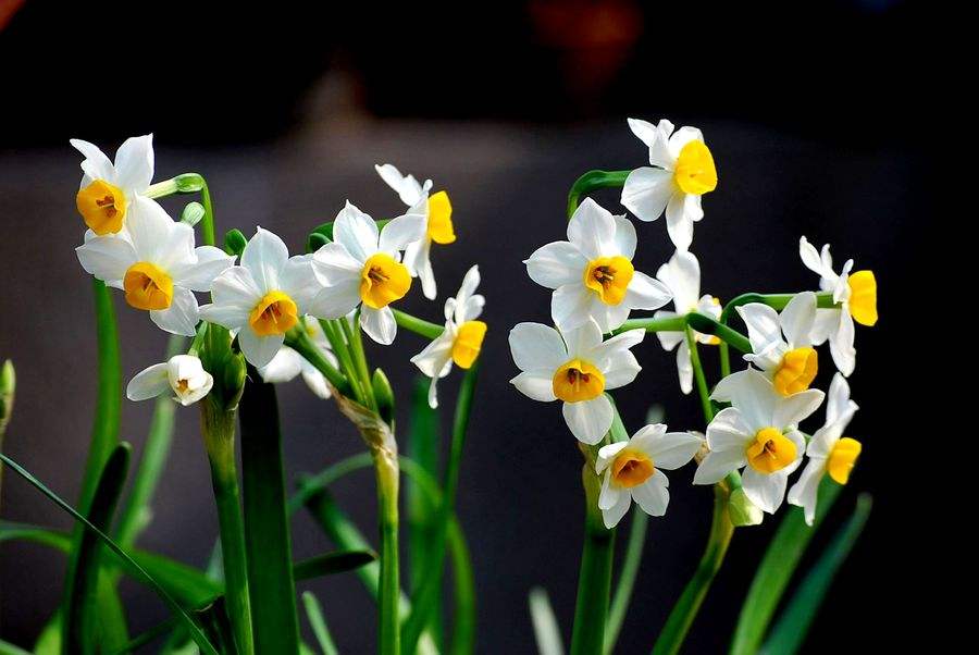 水仙水养期间,要给予水仙充足的光照。白天将水仙放置在向阳处,晚间可放在灯光下。这样可防止水仙茎叶徒长,而使水仙叶短宽厚、茁壮,叶色浓绿,花开香浓。