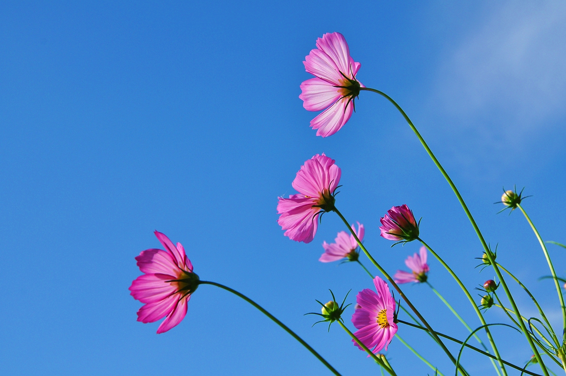 波斯菊的花语是:少女的真心、少女的纯情、清净、高洁、自由、爽朗、永远快乐、怜惜眼前人。