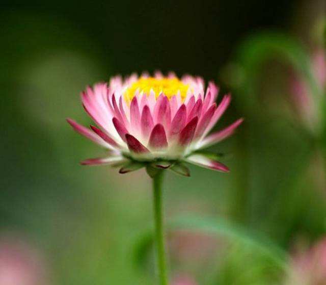 麦秆菊株高50——90公分,茎多发枝,整株被微毛。叶共生,条形披针形,全缘,无叶柄。头状花序单生枝端,盛开鲜丽长久且干后不腿色,花黄、橙、红粉、乳白色。常在9月中下旬之后开展秋种。