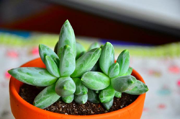 2、浇水:初春和秋天一月浇灌1次,冬天停止浇水,盆景土维持干躁。盆景土不适合过湿,不然肉质叶陡长,或易腐烂。
