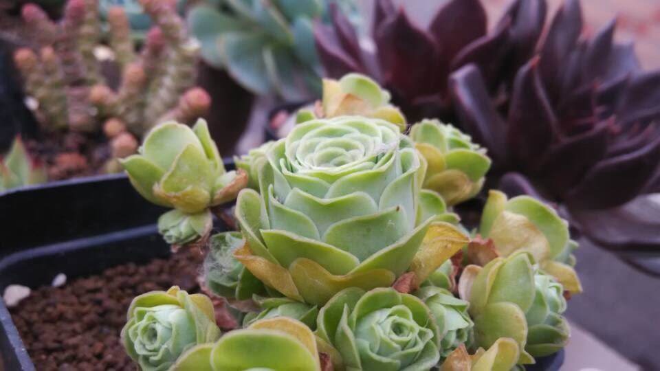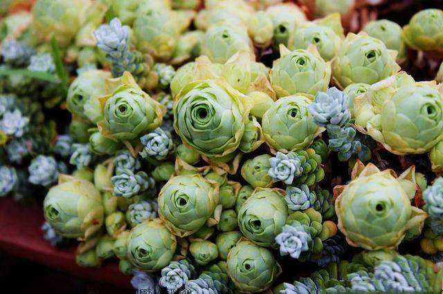 山地玫瑰的肉质叶共生,呈莲座型排序,种类不一样主茎的尺寸也不一样,从2公分—40公分不等。