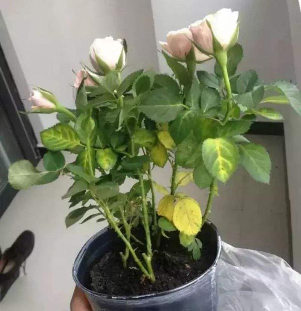 2、处理办法:将一些低浓度的液态肥,浇到盆土之中,为玫瑰花提供足够的养分,在接下来的养护中,稍微增加施肥的频次,它就可以恢复过来了。