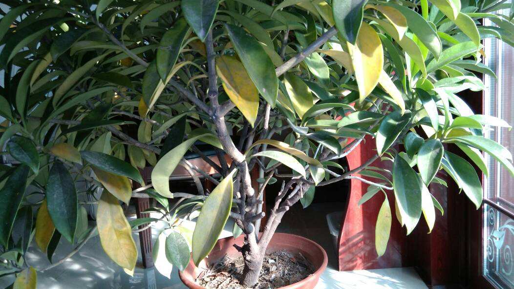 原因:非洲茉莉不耐寒,冬季低于5度就可能被冻伤,从而导致叶片发黄。
