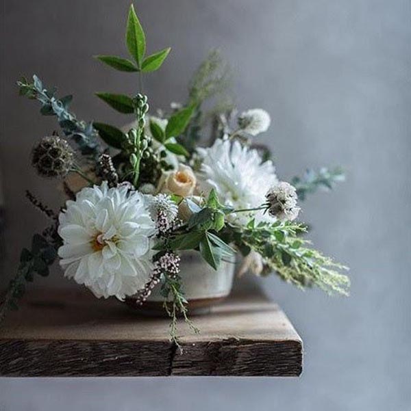 七、平铺式:“平铺”就如字面所示,它所表现出来的是“平”的,没有任何的高低层次,所以它是底部覆盖海绵的技巧之一。为求变化,可使用各种不同的花材,只要看起来是一个平面即可。