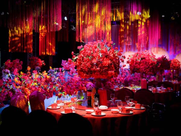 无论是初秋还是深秋,经典的中国红也是非常适合秋季婚礼的。中国红色调的婚礼能庄重亦能时尚。红灯笼、红色剪纸、红色旗袍…庄重而传统。红玫瑰、红色火烈鸟搭配黑色或者金色,时尚而浪漫。
