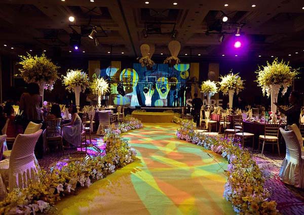 如果不想要亮黄色这么活泼亮丽,可以选择金黄色,这个颜色相对亮黄色会比较内敛一些,相对厚重一点,有种秋季婚礼的沉淀感。