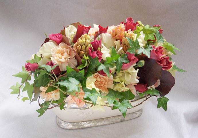 花材简单的分为团状花材、线状花材、散状花材和不规则花材。在一般的花艺作品中,都是运用2种类型以上的花材来传达花艺师的设计理念。