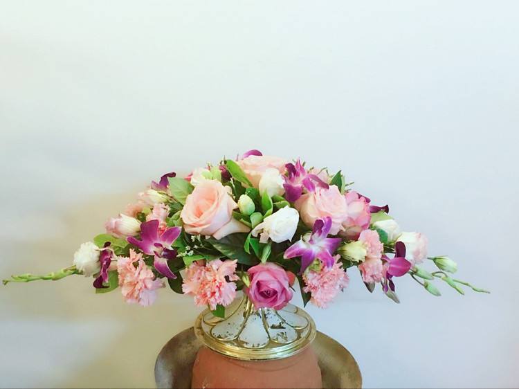 线状的鸢尾用来当成焦点花,不规则的鸡冠花用来制作球型的手捧花、跳舞兰既可以勾勒线条,又可以填补空隙点缀作品。学习花艺最怕思维的固式,认知花材形状的分类和常用的方式后大胆的创造吧。晚安,是花花草草让小编爱上这个世界。