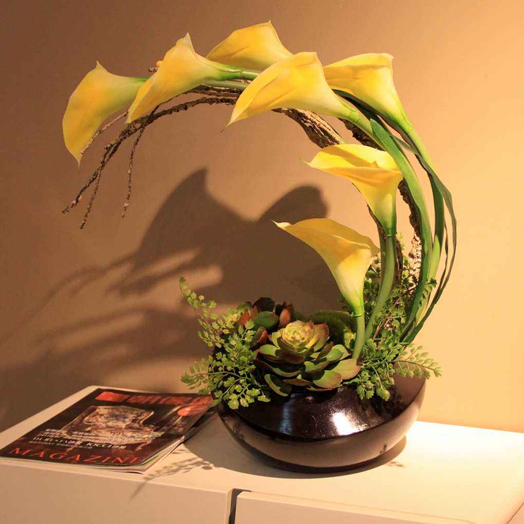 造型独特,本身具有强烈的吸引力,往往被用作焦点花,放置在作品的焦点位置。很多作品的立意及主题思想都是通过特形花来表现的。