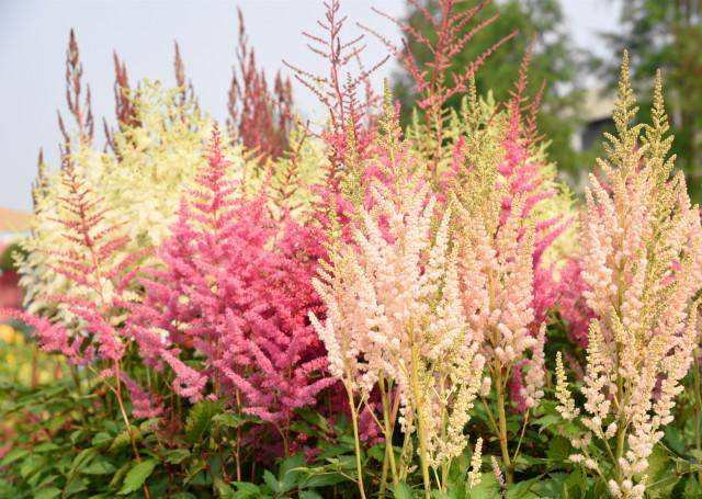 落新妇是非常容易生长的开花植物,它的花朵是一串串迷人的花,花色丰富,如常见的黄色、粉色、红色等。
