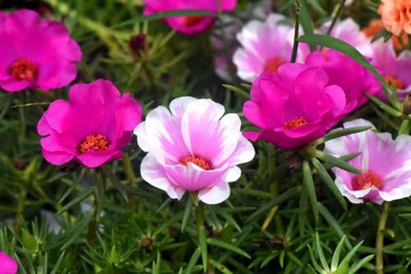 大花马齿苋是特别容易养护的草本小花,开花特别容易,它喜欢常年温暖湿润的环境,对环境适应能力是非常强的,只要保持最低温度在五度以上就能够成活,每天有八小时以上的光照,就能一年四季连续开花了。
