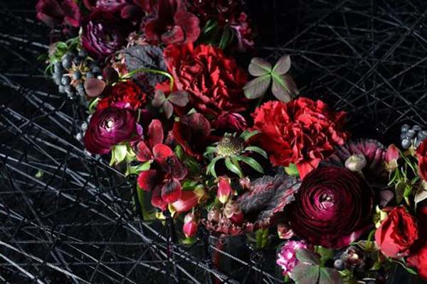比如用淡绿、草绿、橄榄绿等绿色系花材相配能传达出原生态的自然感觉,或是用深红、大红、朱红等红色系花材相配传达出浓烈热情的感觉。同类色搭配的花艺作品传达的氛围都更直接,更纯粹。