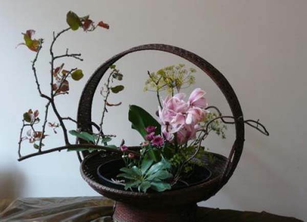 日式插花具今已有500多年的历史,是中日文化的混合体。花器以盆居多,提倡简洁,大方,以黑、白色系居多。
