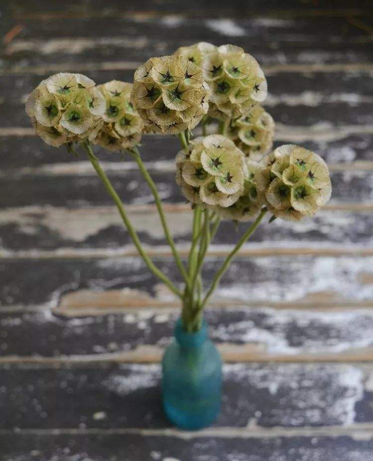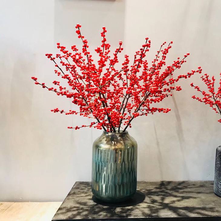 珊瑚果形态非常的讨喜,但是由于珊瑚果的头部果实较重,如果枝干较长,就会弯曲,那么可以将整个植物吊起来,在植物放干后形成笔直的形态插入花器,一束的珊瑚果聚集在透明的花器里同样美不胜收。