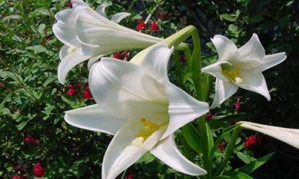铁炮血统(L/LA/LO)百合的分球繁殖能力,特点强健,耐寒性不佳,繁殖快,花色单一,大多为白色,现在有粉色的。