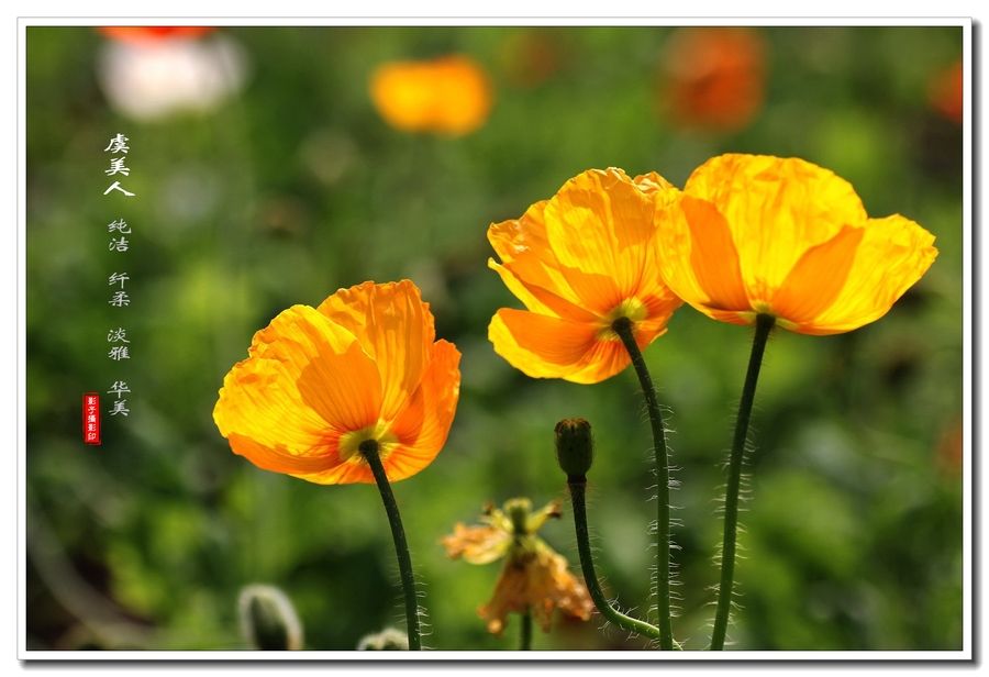 虞美人全株都有明显的糙毛,分枝多并且花茎很纤细,叶质较薄,整体感觉很纤弱。而罂粟全株光滑并且带着白粉,包括茎、叶、果等部分,茎粗壮,茎秆分枝少,叶厚实,看起来就比虞美人强壮了不少!