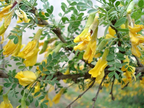 红花锦鸡儿是直立的灌木植物。小枝细长,有棱,灰褐色,无毛,花冠黄色或淡红色。花期是在4--5月,多生于山坡、沟边路旁或灌丛中。