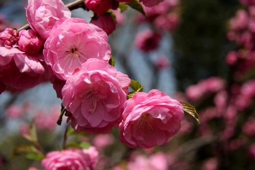 重瓣榆叶梅的枝条皮大多数开裂,因为它的花朵比较大,所以又被叫做“大花榆叶梅”,是一种观赏价值比较高的品种,但开花的时间比其他品种晚一些。