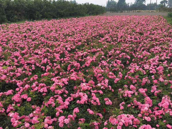 人们常用地被月季来布置色块、路带。而且,地被月季的叶子呼吸性非常强,所以是防止污染的重要植物之一。