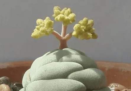 这种小型的青锁龙长的很像一坨坨小便便!特别是在原产地南非干旱的乱石滩,它的颜色跟周遭的环境融为一体,不仔细瞧还真以为是动物的大便。肥厚的白色叶片互生,紧密排列,叶面粗糙有颗粒感。开米黄色的小花,特别可爱。