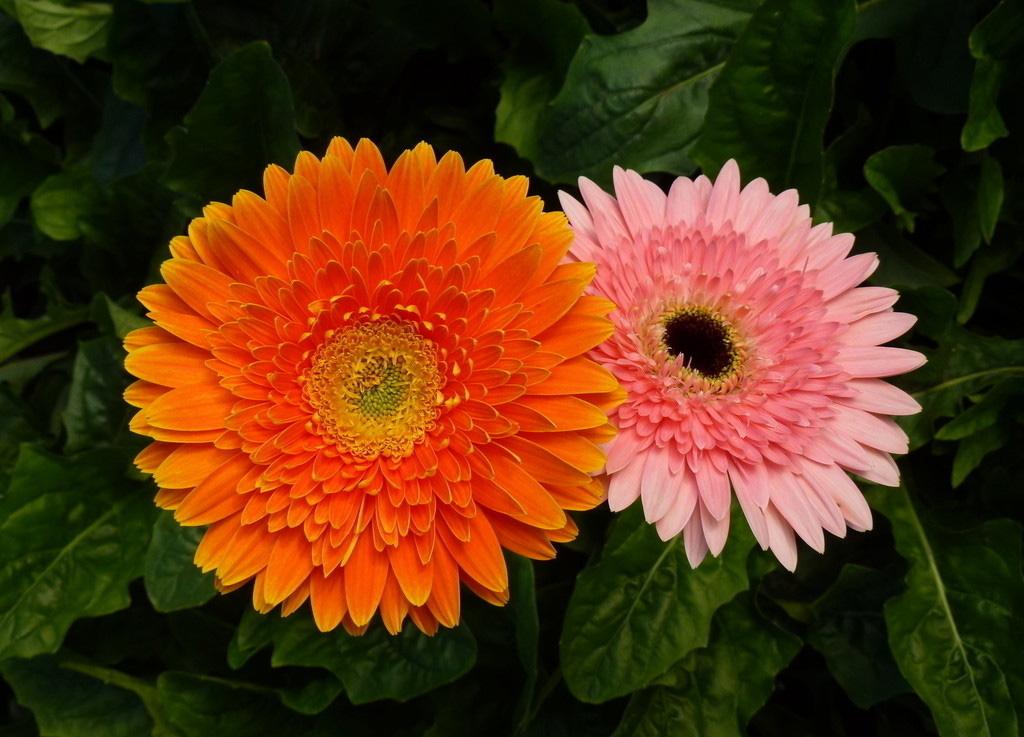 非洲菊和向日葵,二者从株型就有很大的区别,非洲菊株高30——45cm,而向日葵则是高达一米以上。非洲菊和向日葵的花朵大小也不同,向日葵的花朵直径可达30cm,比非洲菊要大很多。其次就是,向日葵的花朵中间有着大大的花盘,里面含有葵花籽。