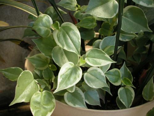 淡绿色,叶缘有黄白色或淡黄色斑纹,非常美丽优雅,放在高处,看着枝蔓渐渐垂下,也是一种享受。