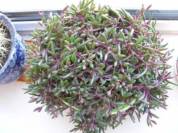 紫弦月,属于多肉,也是一种垂吊品种,将紫弦月挂到高处,它就会慢慢的生长,然后垂下去~