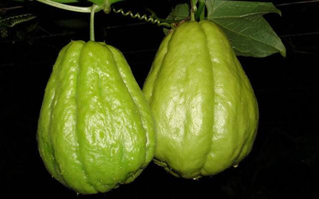 不同于佛手,佛手瓜所呈现的形状大致为梨形,并且在果实表面能发现有5条比较明显的纵沟,以及一条缝合线在位于顶部的位置。绿色表皮的佛手瓜比较嫩,而等到稍老点以后表皮颜色则会转而发白,佛手瓜的果肉颜色为乳白色。