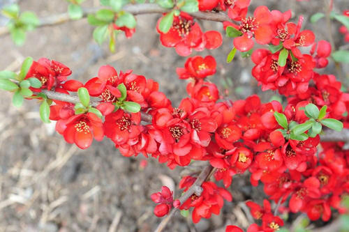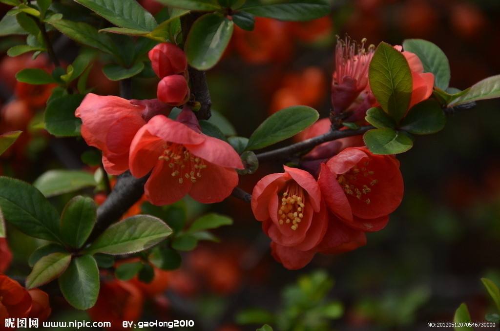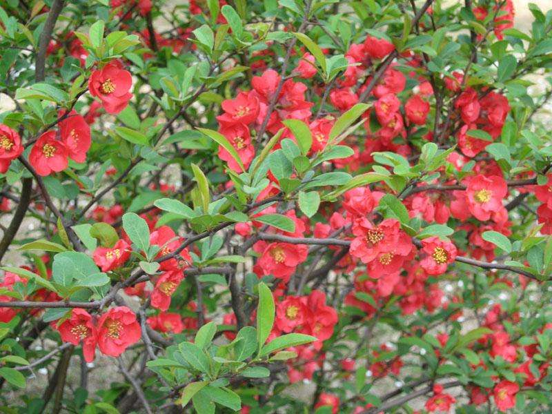 7、红贴梗海棠:花色为红色,是贴梗海棠的栽培品种。