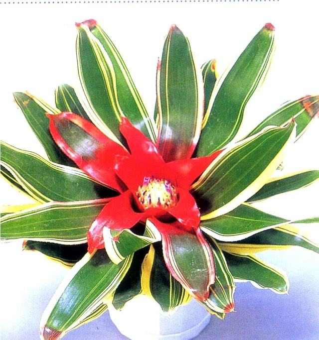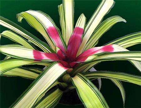 这种呢只一种新引进来的品种,是观叶花卉中最受人们喜爱的一种。它的植株比较矮,一般也就18到20cm,叶子表现为放射状,叶子比较的厚,有光泽呈绿色,中间和边缘都有黄白色的条纹。开花的时候叶子的基部会变为桃红色哦,十分可爱漂亮。