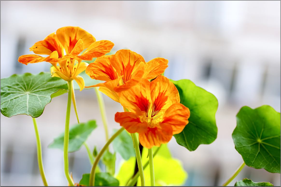 此外,旱金莲的叶片也十分的肥美,绿色配采花,给人美的享受。