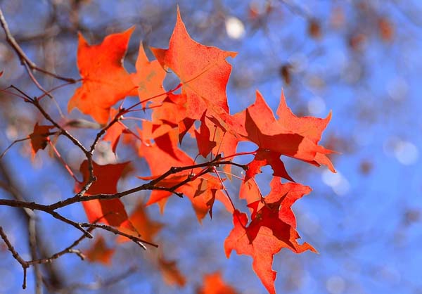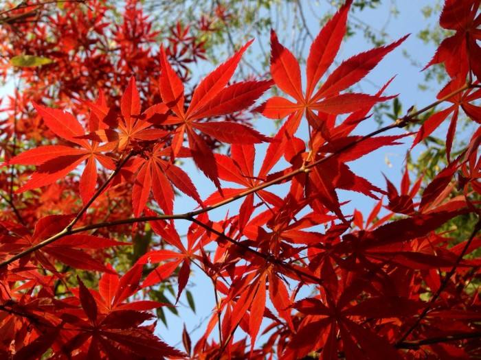 又称为青枫,相较于五角枫来说矮了很多,是一种落叶的小乔木,它的树冠一般是圆球形或是伞形,树枝很细,为灰紫色或是紫色。鸡爪槭的叶子长6到10厘米,掌状有5到7厘米的深裂,叶子的边缘还有细重的锯齿。它的花是紫红色,果实呈球状。