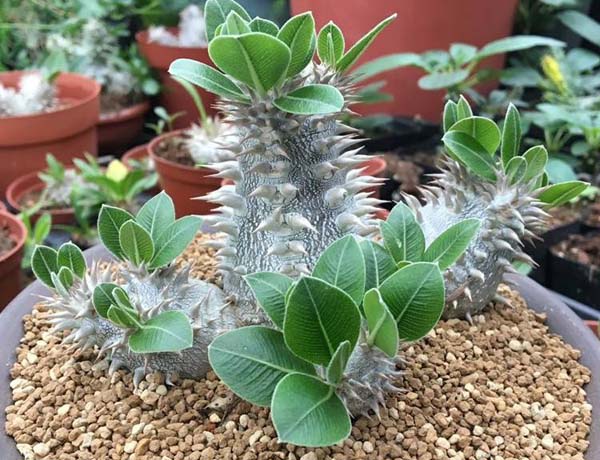 其实惠比须大黑是日常选择惠比须笑通过与西巴女王之玉栉杂交的品种,首先我先给大家简单介绍一下西巴女王之玉栉,它的还有另外一个名字叫做密花棒槌树,植物的外形却像是棒槌,是一种比较稀有的植物。而惠比须大黑我外形正是把这两种植物合体了。既有西巴女王之玉栉的满身刺,又有惠比须笑的矮小与敦实等,好像有一种基因继承的感觉。